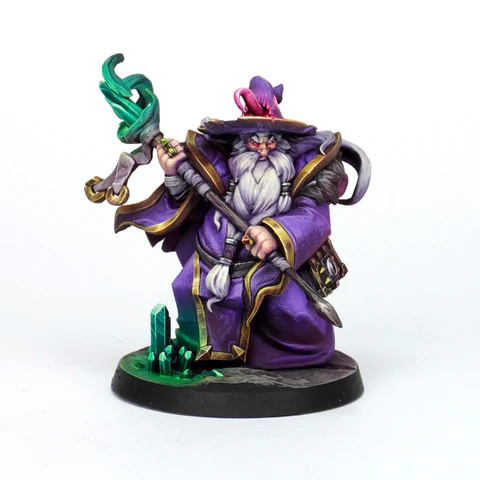 El personaje seleccionado es un poderoso mago humano sobre el cual se aplicará una capa base y las primeras iluminaciones utilizando el aerógrafo. Esta técnica se enfoca principalmente en los componentes más prominentes de la miniatura, como la toga en este caso particular. Sin embargo, en otras figuras, este enfoque puede dirigirse hacia otras prendas de vestir, armaduras, gemas e incluso piezas de carrocería (si sois de los que disfrutáis con la temática más futurista)